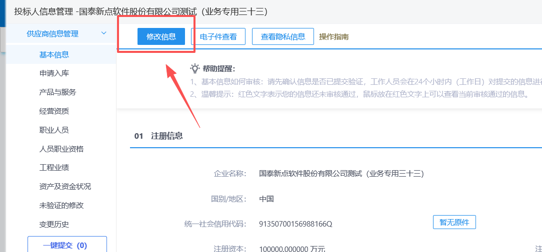 选择修改企业信息