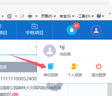 登录供应商系统选择单位信息